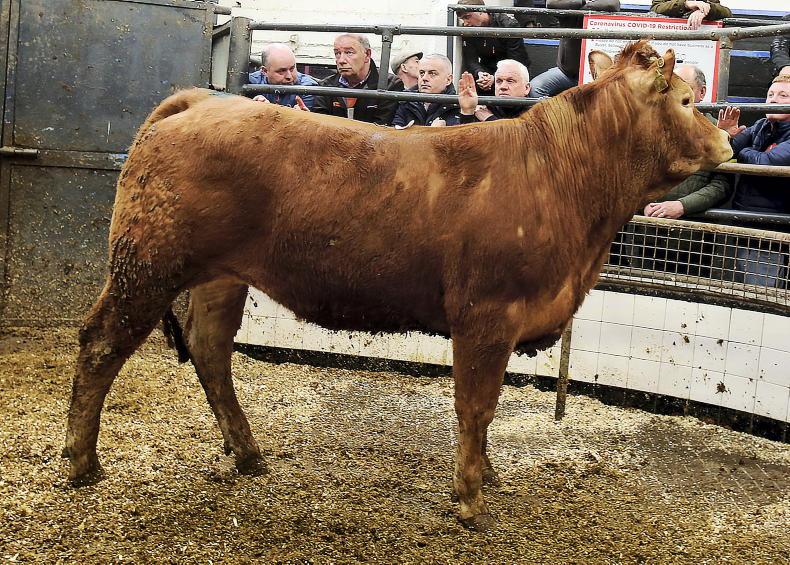 This Limousin-cross heifer weighing 695kg and born February 2020 sold for €1,990 (€2.86/kg).