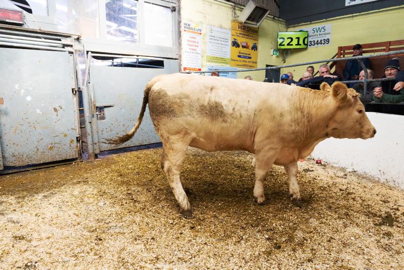 This 32-month-old Charolais-cross heifer weighed 690kg and sold for €2,800 (€4.06/kg).\ Claire Nash