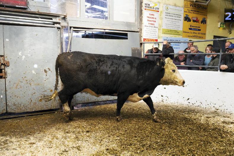 This 30-month-old Limosuin-cross heifer weighed 475kg and sold for €2,070 (€4.36/kg). \ Claire Nash