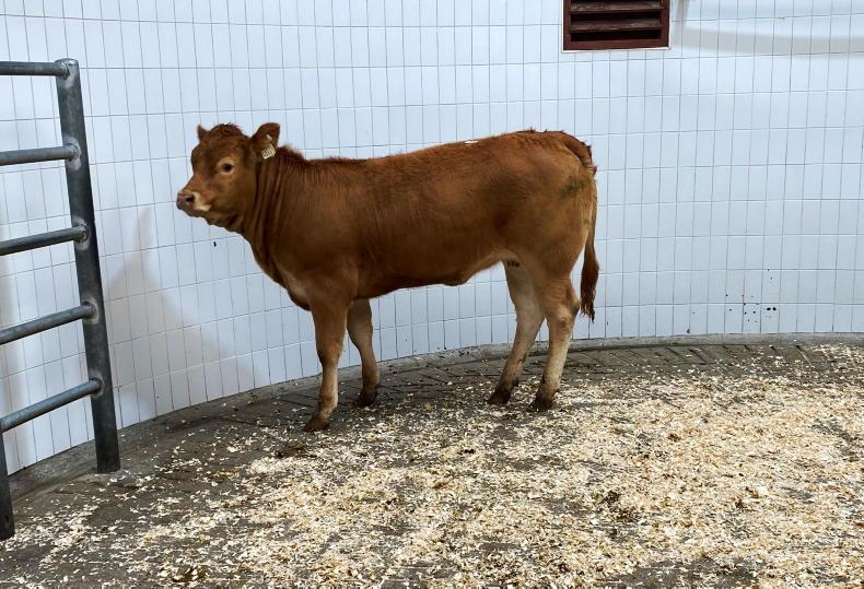This Limousin-cross heifer born January 2023 and weighing 265kg sold for €770 (€2.90/kg).