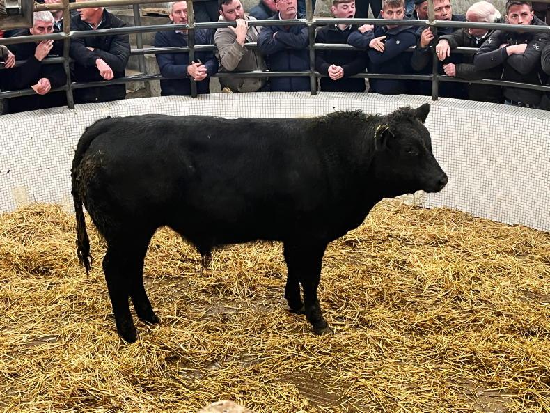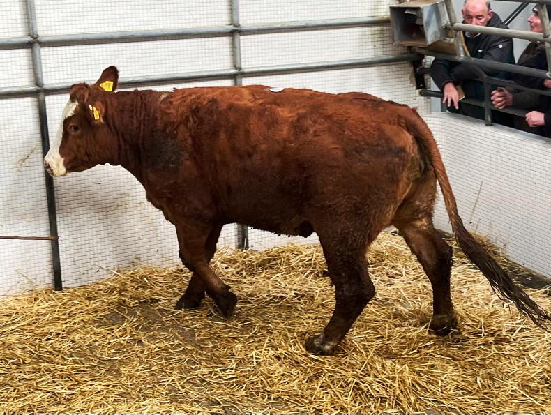 This Charolais-cross bull, born April 2022 and weighing 275kg, sold for €850 (€3.09/kg).