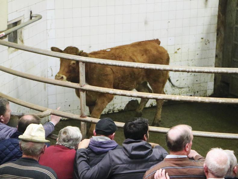 This Limousin-cross bullock, weighing 445kg and born March 2017, was bid to €845 but not sold (€1.90/kg).