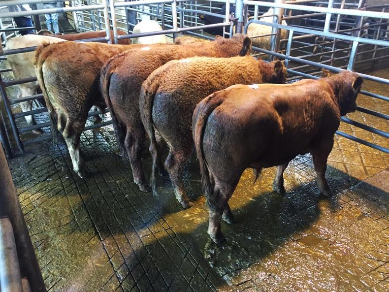 The main run of bulls from 300kg to 400kg sold from €550 to €620 over the weight for good-quality types. Heavier bulls over 400kg were met with firm feeder demand also.