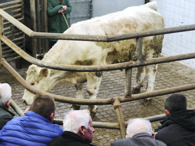 This Charolais cross bullock, born April 2017 and weighing 610kg, sold for €1,350 (€2.21/kg).