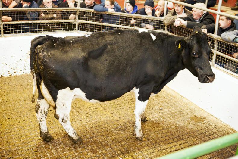 This Friesian cull cow, born 2007 and weighing 625kg, sold for €725 (€1.16/kg).