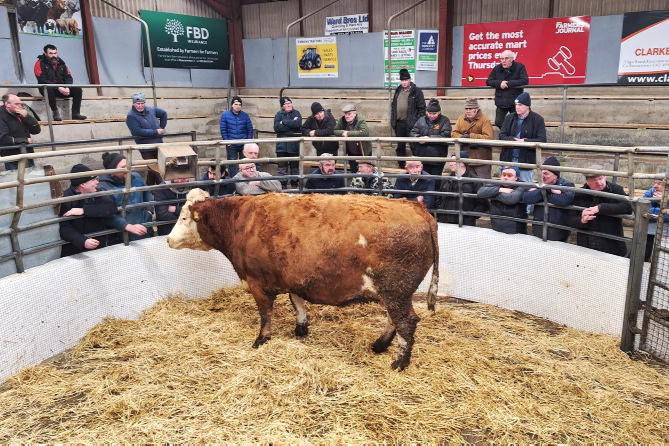 There was an entry of about 40 bullocks with the majority weighing from 500kg to 600kg. Prices ranged from €3/kg to €3.80/kg with a high percentage of lots being Aberdeen Angus-crosses.