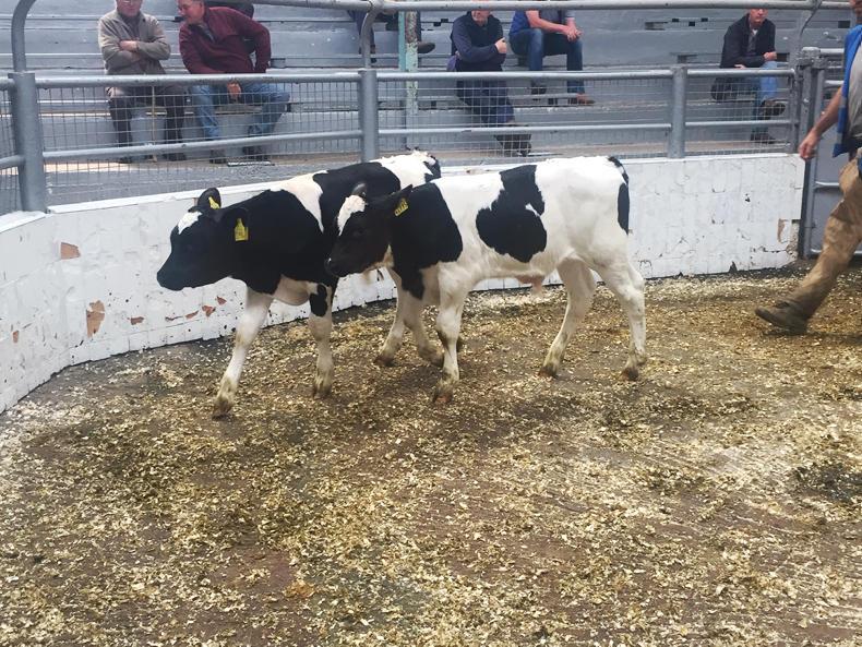 This pair of well-made Friesian bulls born the start of June sold for €185.
