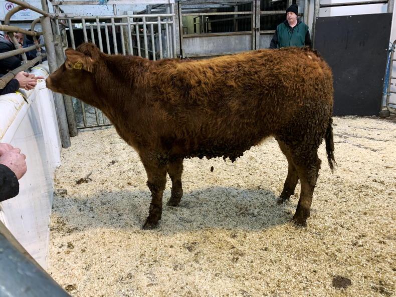Continental bullocks secured an added premium on this price. One Limousin weighing 520kg sold for €1,180, two Charolais weighing 400kg each sold for €860, while a single Limousin weighing 450kg sold for €1,050.