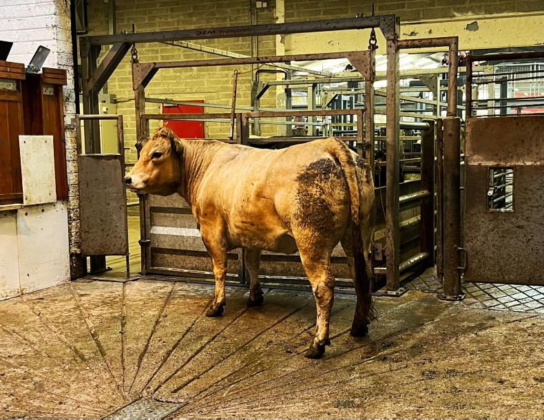 A pen of five Charolais-cross bullocks weighing an average of 537kg fetched €1,670/head (€3.11/kg), while a pen of eight Friesian bullocks weighing an average of 407kg made €830/head (€2.04/kg).