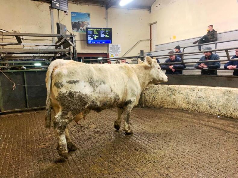 This Charolais-cross cull cow born in February 2018 weighed 815kg and sold for €2,030 (€2.49/kg).