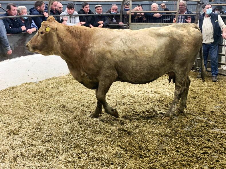 This 10-year-old Charolais cow weighed 844kg and sold for €1,480 (€1.75/kg).