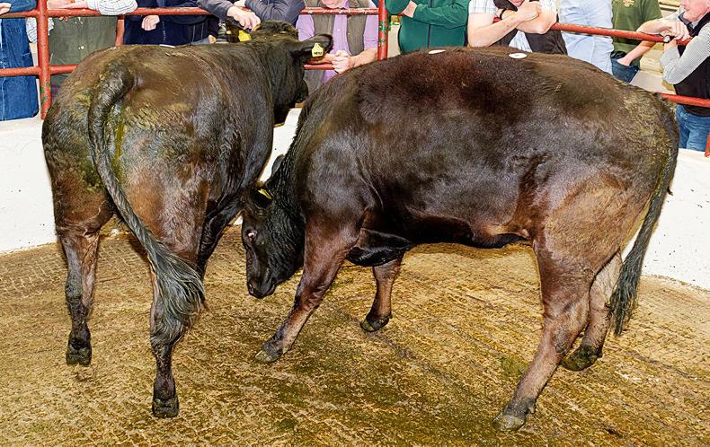 This pair of quality Limousin heifers with an average weight of 692kg sold for €1,355 each (€1.96/kg).