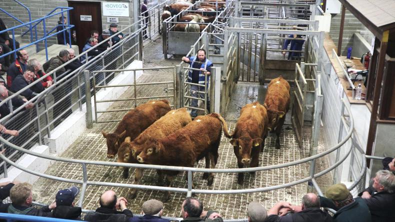 With almost a 100% clearance rate, most sold for between €1.90/kg and €2.20/kg, with the older heavier stores at the lower end and a share of heavy weanling bullocks selling well.