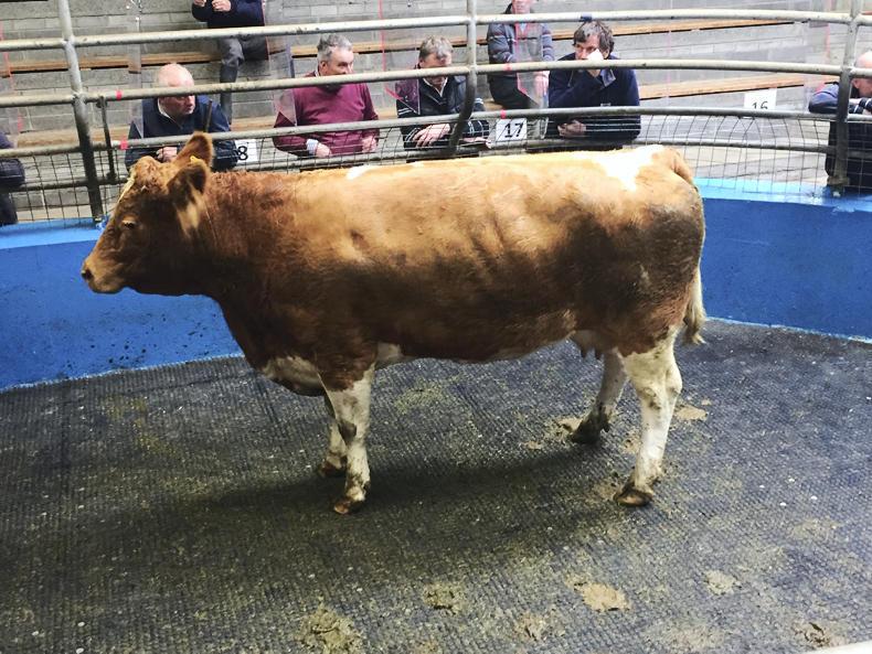A 2016-born Simmental cross cow weighing 615kg sold for €940.