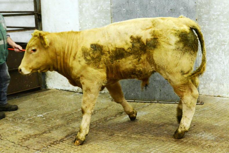 This Charolais-cross bull weighing 455kg sold for €1,450 (€3.19/kg).