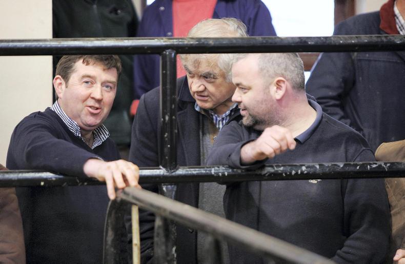 Maurice Brosnan, Gortatlea Mart manager; Richard Hartnett, retired manager at Castleisland Mart; and Timmy Moriarty; at the Gortatlea Mart dairy sale, Co Kerry. / Valerie O'Sullivan