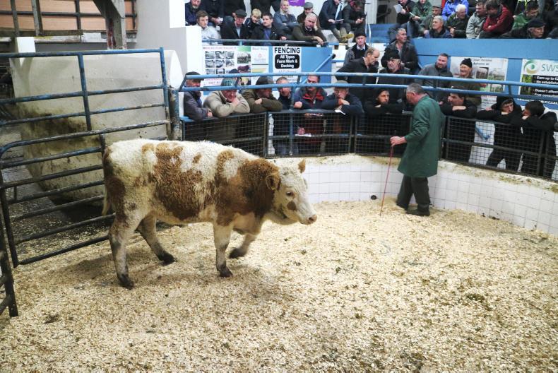 The best price of €1,450 was paid for the Simmental cross heifer pictured with the remaining lots selling from €1,300 to €1,440. A few in-calf heifers on the point of calving and offered at the end of the sale met a similar trade with one sold for €1,300 and one unsold at the same price.