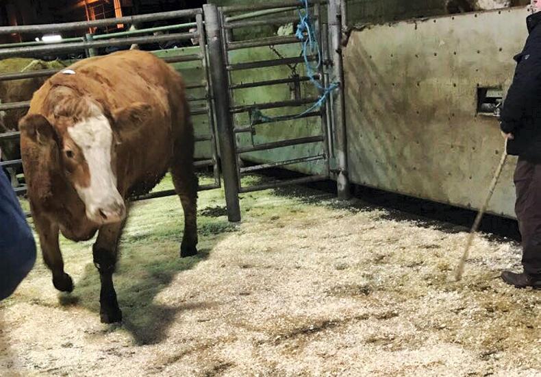 This Simmental-cross heifer is due to calve on 6 November to a Limousin bull and sold for €2,000.