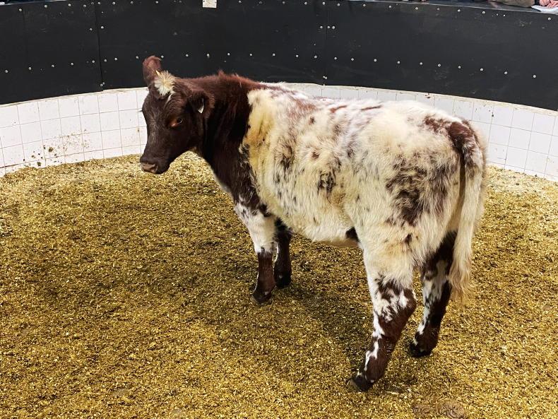 This April 2022-born Shorthorn heifer weighed 260kg and sold for €920 (€3.53/kg).