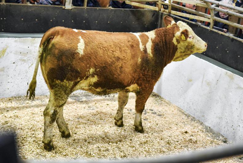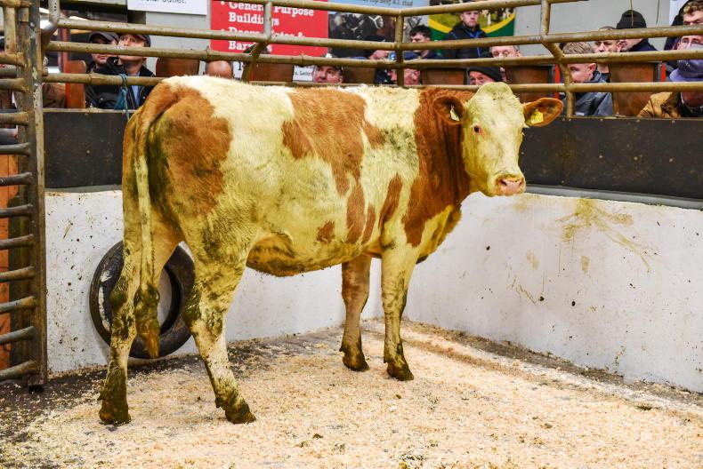 This Simmental-cross in-calf heifer born January 2023 and weighing 725kg sold for €4,000 (€5.52/kg).