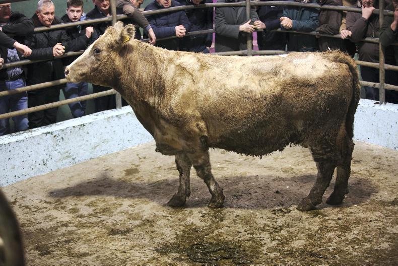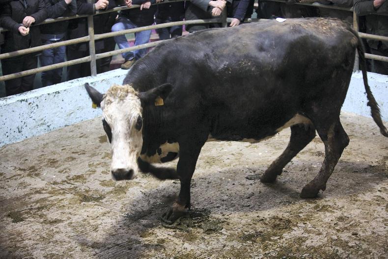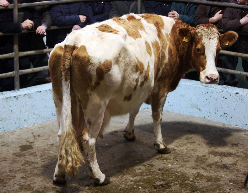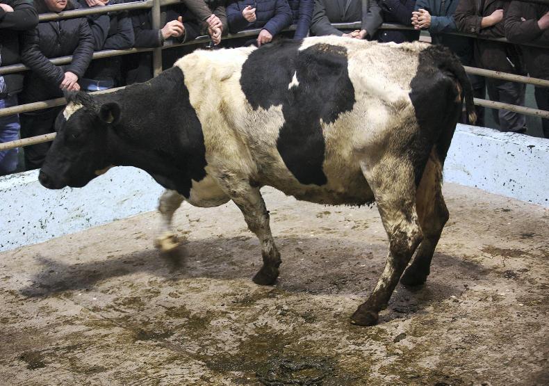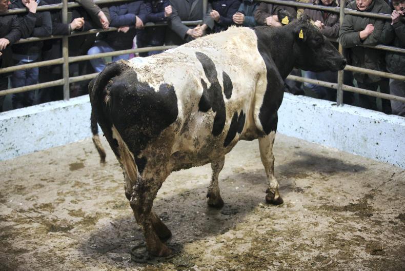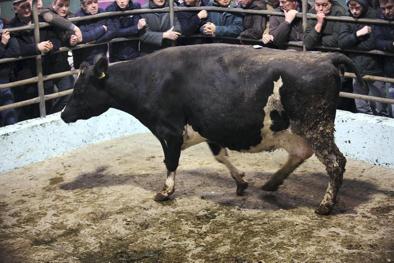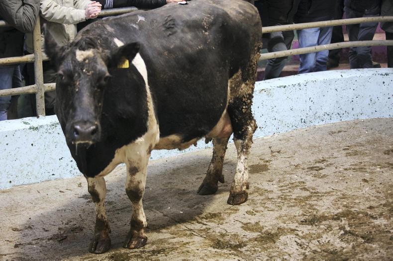There was a good entry of fleshed and feeding cows on the day. Good-quality heavy cows were a strong trade, and prices of those over 700kg ranged mainly from €300 to €400 along with the weight, with the prizewinner selling at €1,600. Good-quality fleshed Friesian cows sold from €1.40/kg to €1.60/kg, while plain cows out of the parlour were making from €1.00/kg to €1.10/kg. Commission rates are €7.50 to the buyer and 1.5% to the seller.