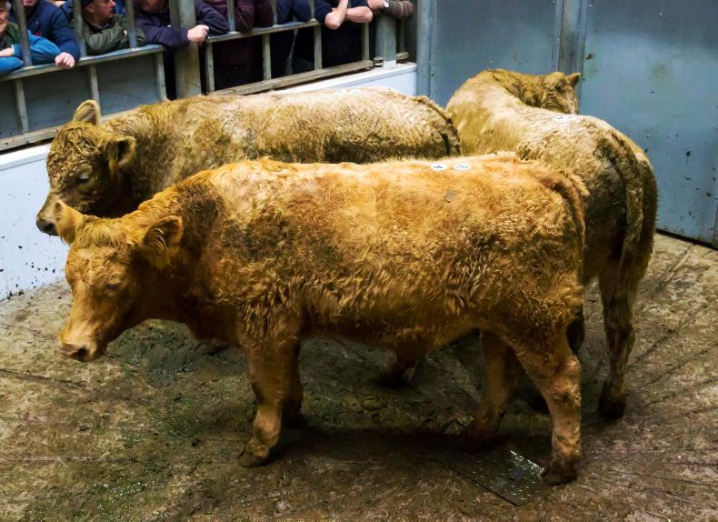 The top price in this category was for five Limousin bullocks which weighed 375kg and made €1,280/head.