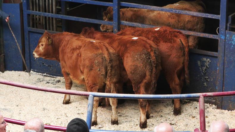 One Charolais, April 2019, 300kg – €725 (€2.42/kg).Five Charolais, March 2019 285kg – €740 (€2.60/kg).Three Limousin, March 2019, 310kg – €845 (€2.73/kg).Two Charolais, February 2019, 300kg – €785 (€2.62/kg).One Belgian blue, April 2019, 345kg – €1,000 (€2.90/kg).Two Angus, November 2018, 275kg – €600 (€2.18/kg).One Charolais, February 2019, 405kg – €840 (€2.07/kg).One Hereford, February 2019, 320kg – €650 (€2.03/kg).There was a tighter price range for heifers with €2.00/kg to €2.20/kg covering a lot of what was on offer, but there was more available for quality continental lots which sold from €2.20/kg up to €2.60/kg.