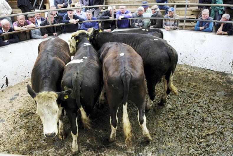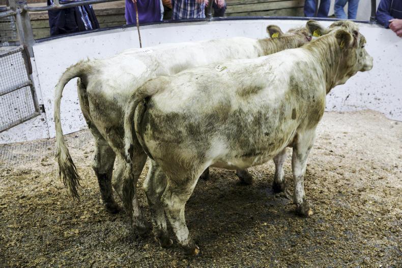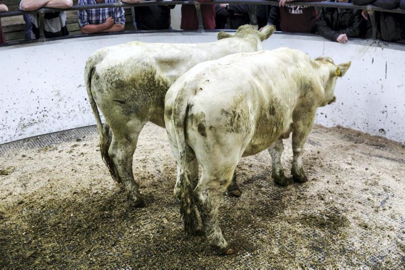 Bullocks weighing 450kg to 540kg sold from €2.10/kg for dairy crossbreds to €2.30/kg for R+/U- grading types, with the best quality lots selling to €2.40/kg to €2.50/kg and even higher in cases.