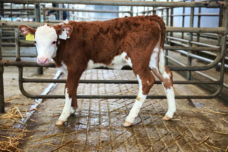 A five-week-old Angus-cross bull weighing 84kg was the sale topper as he made €700, while the highest price Hereford-cross sold for €670.