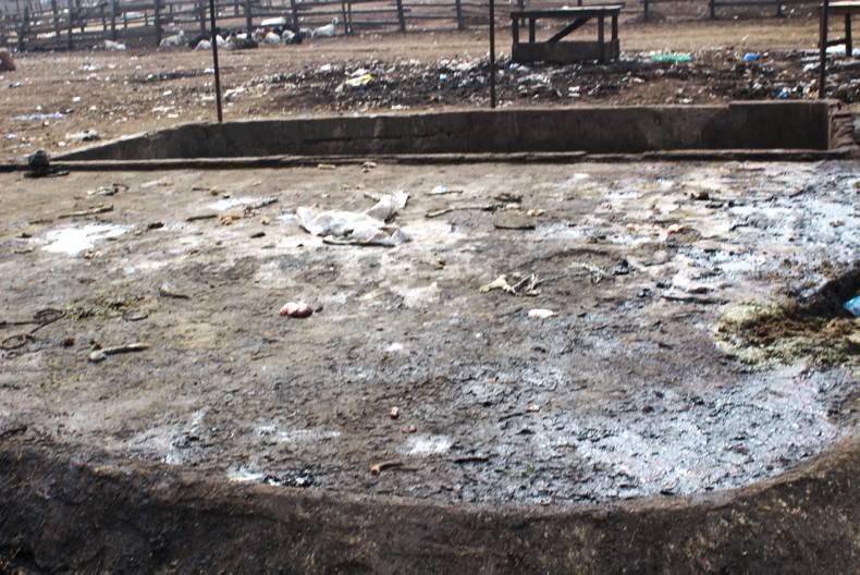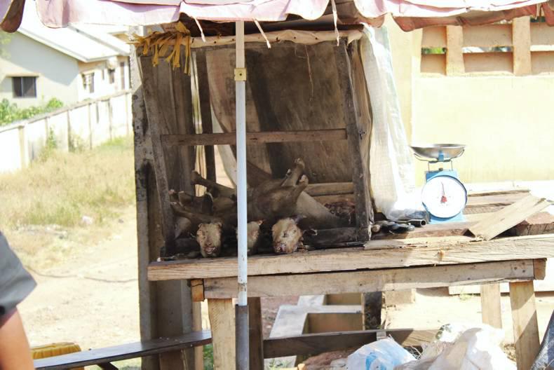 It is also fairly uncommon for cattle and goats being slaughtered for meat to go through the abattoir system at all. More typical is that cattle are taken to a market where butchers select an animal for their shop or stall. As refrigeration is limited and often non-existent, butchers tend to operate on a day-to-day basis, using the animal killed today tomorrow. At the market they will select an animal and butcher it on the spot on a concrete slab, the example featured in the picture was taken in a market in Ghana’s capital, Accra.