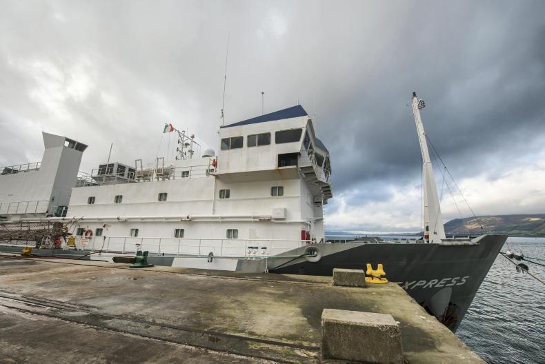 The Brahman Express docked at the Co Louth port this Monday evening. Live exporter Viastar is expected to load 3,000 weanlings on the ship this week for the Turkish market.