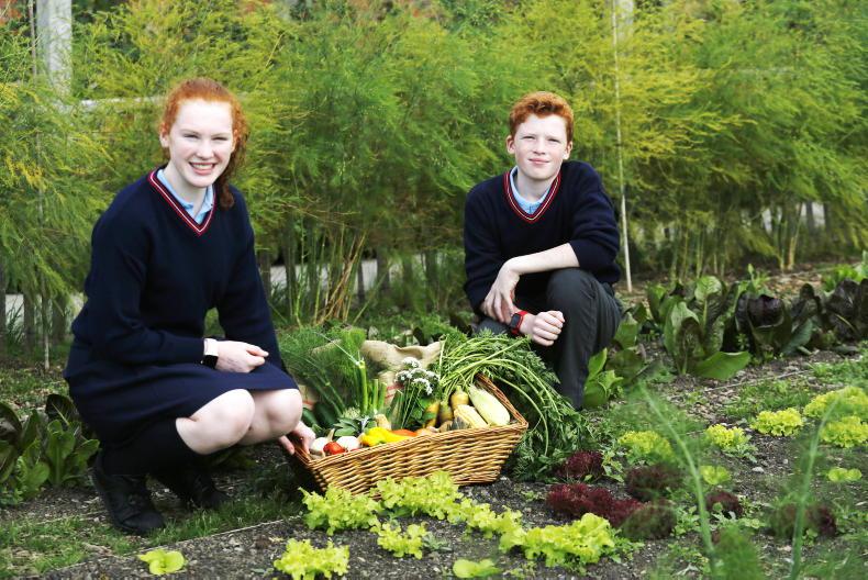 Dr Kirstie McAdoo and Lucy Clarke (13) from Wesley College look at what seasonal veg students could grow at Airfield Estate, Dundrum. \ Leon Farrell