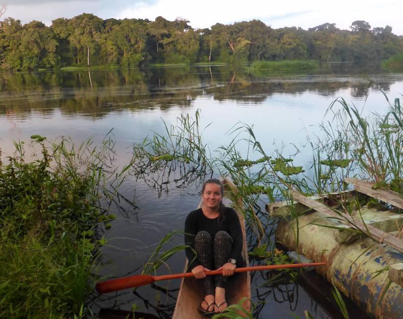 It was so peaceful. The only sounds were the gentle plop of the paddle into the water and the low throaty call of a Great Blue Turaco bird somewhere up ahead. On either side of us was thick jungle, bursting at its seams and seemingly rolling into the river so that the water and the trees flowed effortlessly into each other. I’ve often felt very insignificant here in the jungle where nature seems to be completely unaware of and uninterested in my presence, and is breathtakingly beautiful just for her own sake. This particular evening was no different.