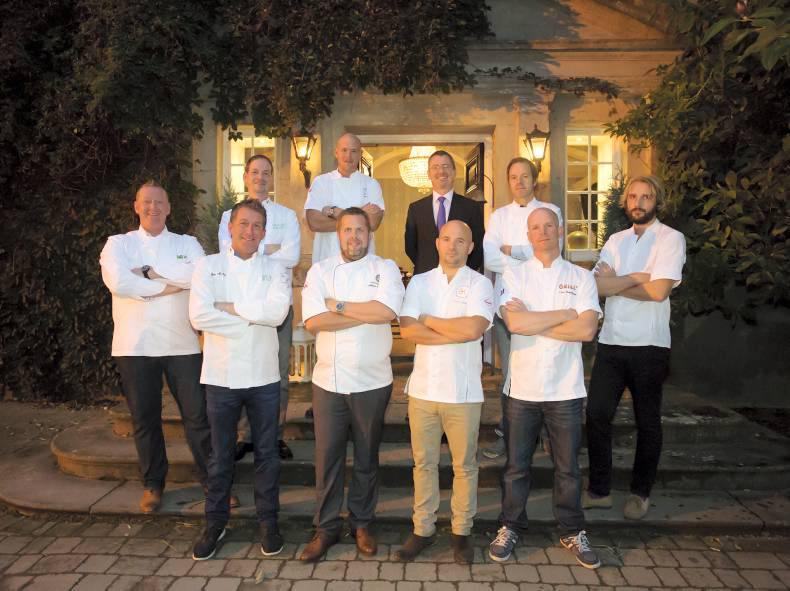Shane McMahon is pictured second from left at the front at the chefs dinner at Dunbrody House, Co Wexford. Also pictured are Mario Corti, Shane McMahon, Andreas Hedlund, Karl Ljung, Claes Benediktsson and Jim Lofdhal. Back l-r; Christoph Ruffer, Johan Jureskog, Jim O'Toole Bord Bia and Marco Muller. Photo; Mary Browne