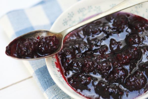 Before you start, put a small saucer in the freezer. Tip the berries, scraping out all juices and any undissolved sugar, into a preserving pan, or a large, wide-based pan (the wider and more open the pan, the faster the jam will be ready so a preserving pan is really ideal). Stir in the lemon juice and cassis.
