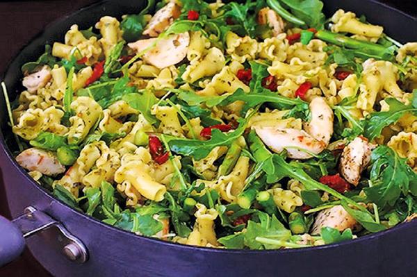 Chicken, roasted almond and wild garlic pesto with wholegrain spelt pasta