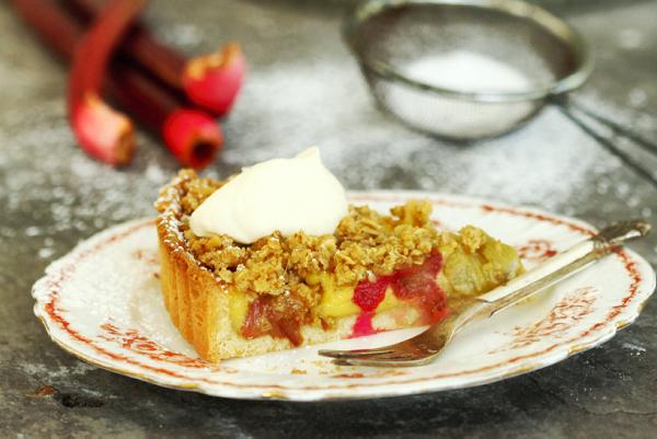 Meanwhile, mix the melted butter, Demerara sugar, oats and ground ginger together and set aside. Once the tart has had its time, scatter the oaty mixture evenly over the top. Return to the oven for 15 minutes, until the crumble is golden.