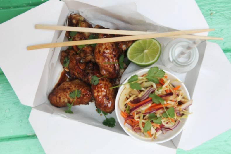 Sticky chicken wings with Asian slaw