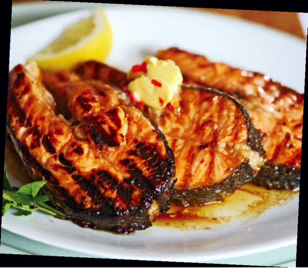 Brush with oil and BBQ or grill over a low heat, turning over once, until salmon is fully cooked.