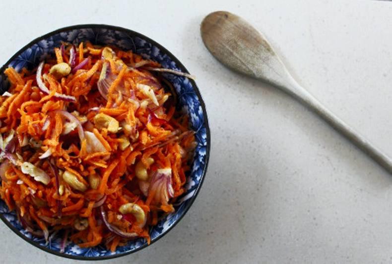 Homemade Honey and Mustard Slaw with Carrot, Radish, Red Onion and Cashew Nuts. Recipe here