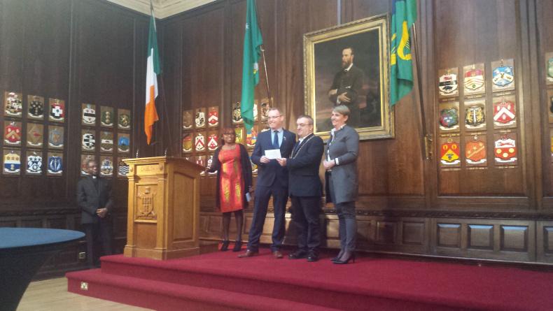 The Lord Mayor was on hand once again at the cheque presentation ceremony, hosted at his official residence, Dublin’s Mansion House. Proceedings were opened by Suzanne Gachukia-Opembe, outgoing chairperson of the International Charity Bazaar.