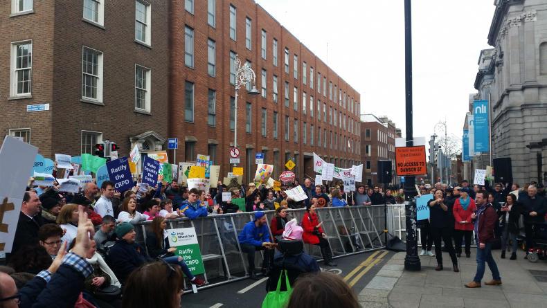 People with disabilities, their families and advocates protested outside the Dáil last Thursday because Ireland is now the only country in the European Union that has not ratified the United Nations Convention on the Rights of People with Disabilities (UNCRPD).