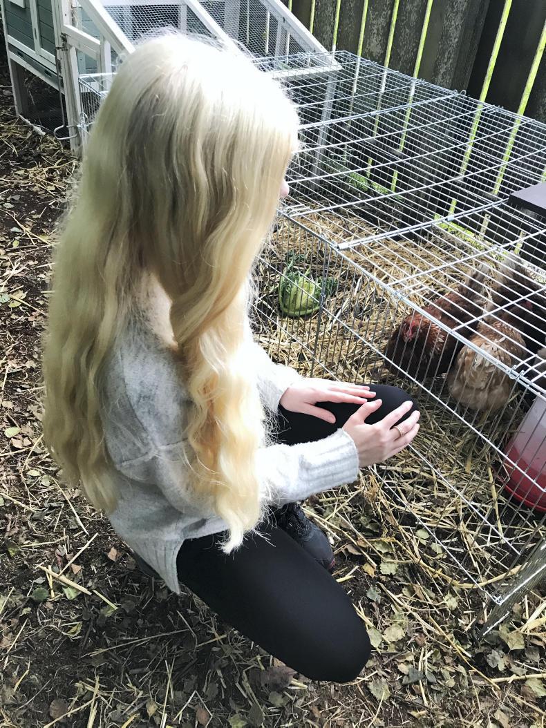 Sixteen year old student Emily Callaghan is going into her leaving cert year. She lives on a farm in Co Donegal which has 120 sheep of all breeds, two heifer calves, four working border collies and the newest addition – four road island red chickens, which lay eggs daily.