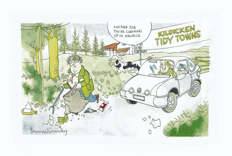 I’m a reluctant participant. My days at the recycling depot are spent in a yellow jacket tidying up the mess created by the whole of south Tipperary – I don’t need to be spending my spare time doing the same thing in my own village.