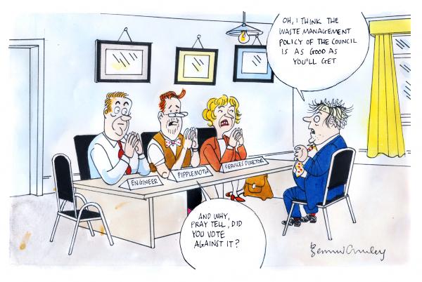 I applied for the job of part-time assistant recycling attendant at the waste management facility on the Drumbarrel road. I didn’t expect that getting my CV together would be such a bother. I was sure ’twould be what one might call a slim volume. Beyond my primary and secondary schooling, all there is to say about me is that I’ve spent years on the council.