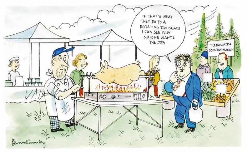You might think all this is cracked but I reckon it makes a lot of sense. If there are 15 ministries to give out and if each minister is appointed for eight months during a five-year Dáil term, then about 120 TDs will have had their shoes under a ministerial desk. The remaining three dozen or so that didn’t get a chance at the top table could be given other jobs like mopping up after Irish Water, draining the Shannon or reviving the Irish language. At the next election, every TD in the house will have to face the people and account for his or her movements instead of blaming everybody else for the state we’re in.
