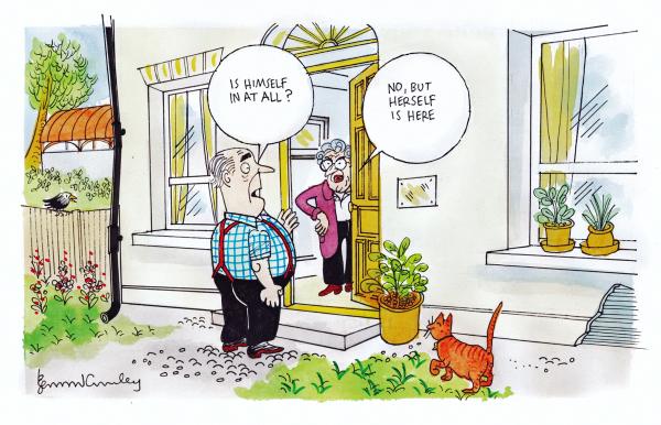 Anyway, I can see the quare looks I get and can almost hear the snide remarks when we’re out and about and Stefan is in the car beside me. People would pass no remarks if I had a big yoke of a Labrador propped in the front seat. But to have a man at my age, and a foreign man at that, is not the thing.