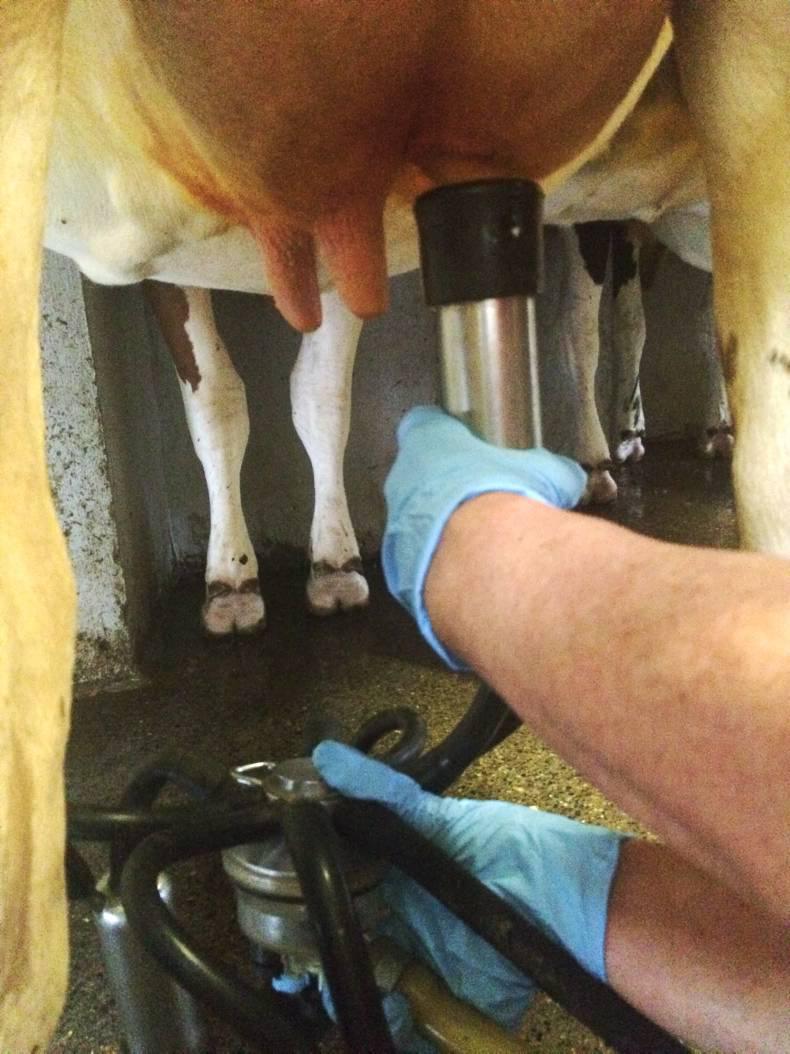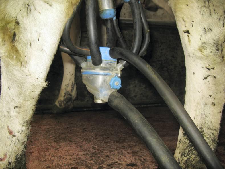 For farmers who do not have automatic clusters installed, it is important to know when the cow is finished milking – usually a single stream of milk in the bowl is a clear signal that the cow has been milked out, and at this point farmers should remove the cluster. Farmers who leave clusters attached until there is no milk visible at all in the claw are over-milking and may cause damage to the teats of a cow. Over-milking a cow has been linked to increased mastitis occurrence and an increase in somatic cell count (SCC).