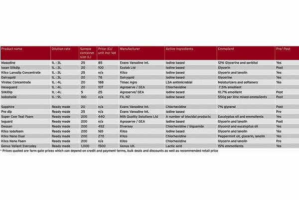 There are a large number of teat sprays on the market and in Table 1 above we list the products some of the farmers were using in our survey. It is by no means a conclusive list of all sprays on the market.