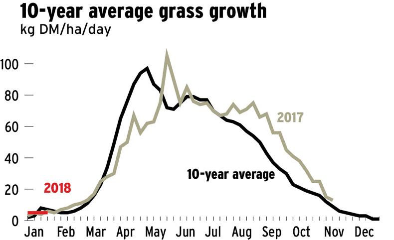 Average grass growth rates this week are a little over 5kg/day. That information is purely academic as heavy snow has wiped out any hopes of grazing over the coming days.